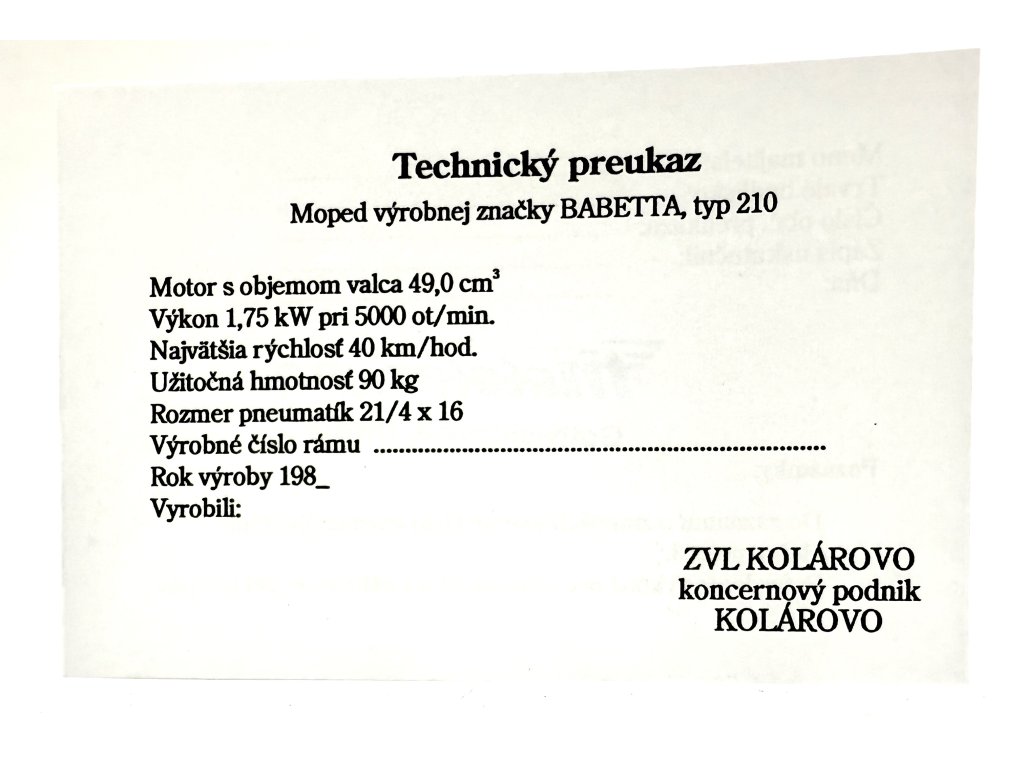 JAWA | Babetta, Stella | Babetta typ 210 (2-rychl.) |