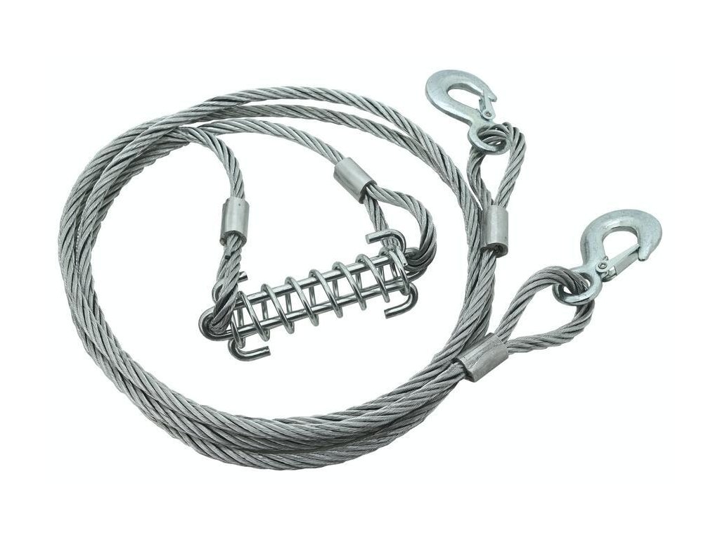 Ocelové lano s háky a pružinou pro tlumení rázů, je navrženo pro spolehlivé a bezpečné vyproštění vozidel.