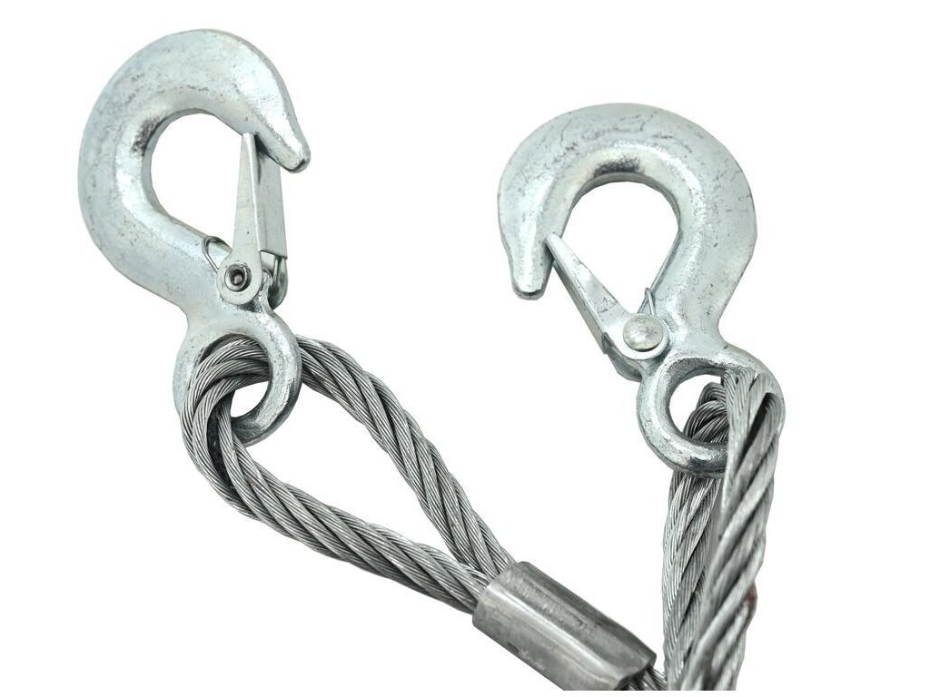 Lano je spleteno z vysoce kvalitních ocelových vláken, která zajišťují vysokou odolnost proti přetržení. Na koncích je lano opatřeno ocelovými háky s bezpečnostní pojistkou pro rychlé a bezpečné upevnění.