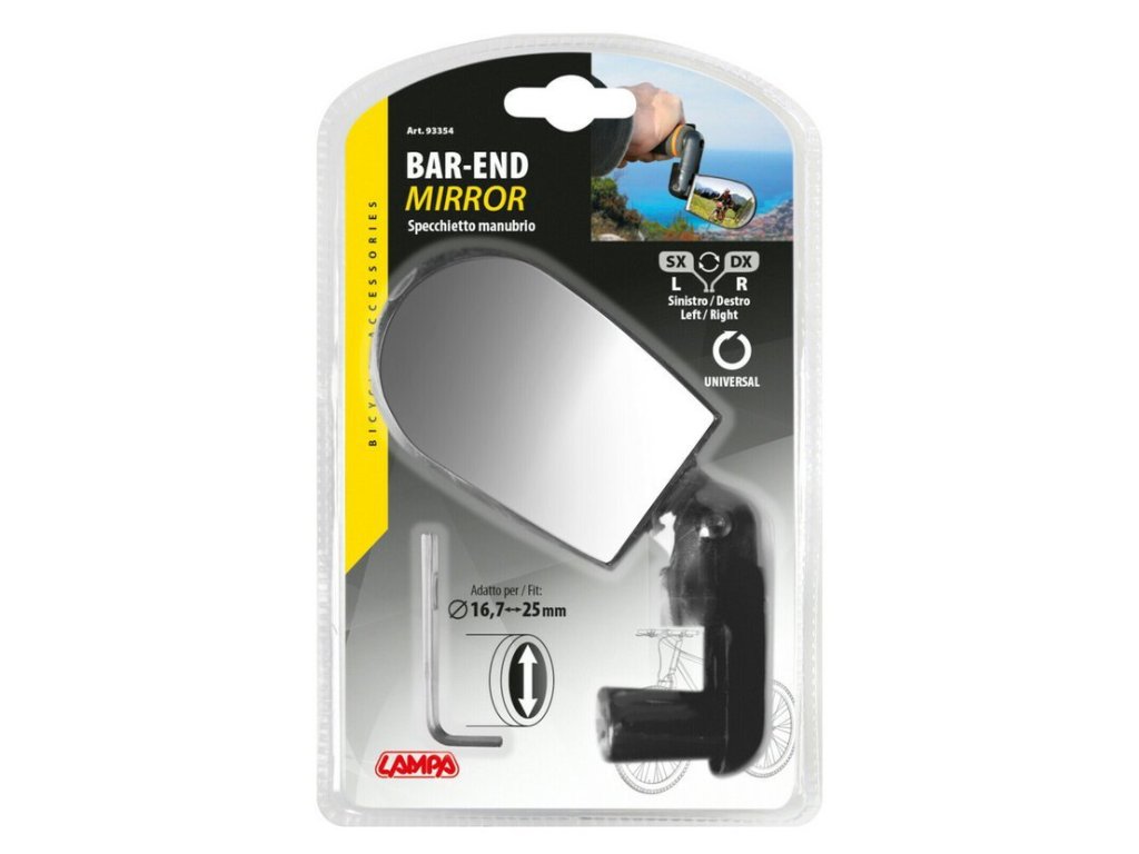 Plně nastavitelné zpětné zrcátko do cyklo řídítek. Možnost montáže jak na levou tak i pravou stranu.